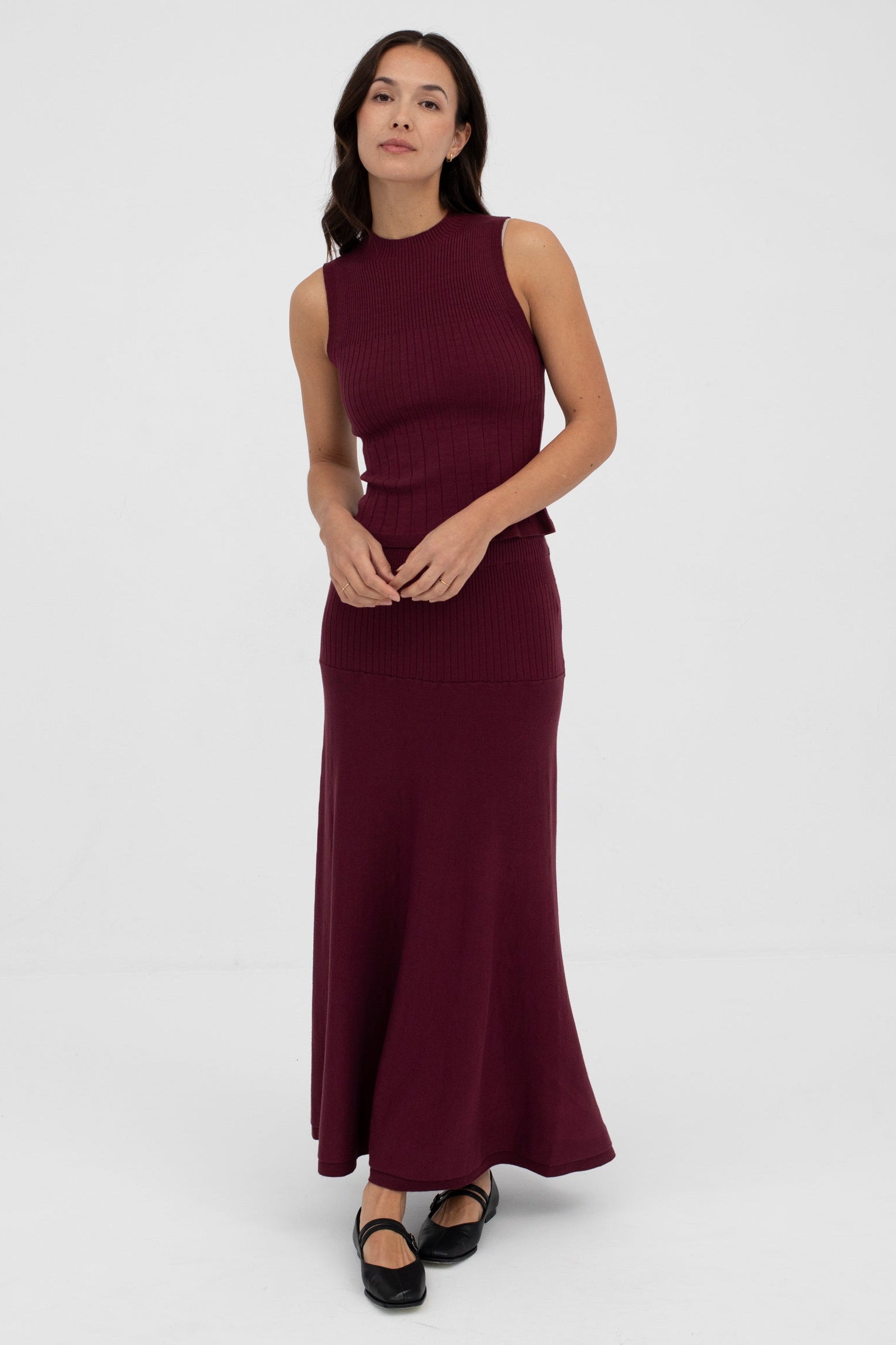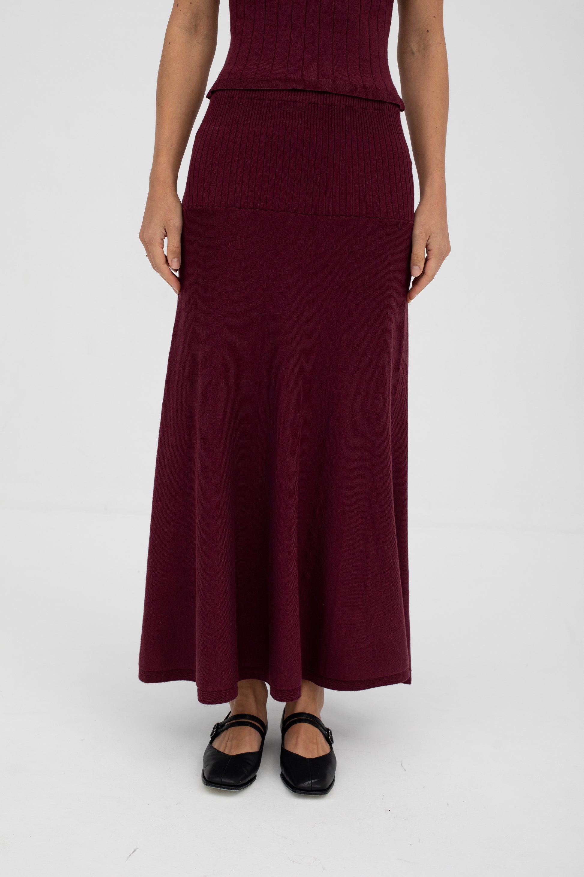Falda de punto con goma elástica interior en la cintura para un ajuste cómodo. Se compone de diferentes canalés en la zona de las caderas, con un acabado de fantasía en el bajo.