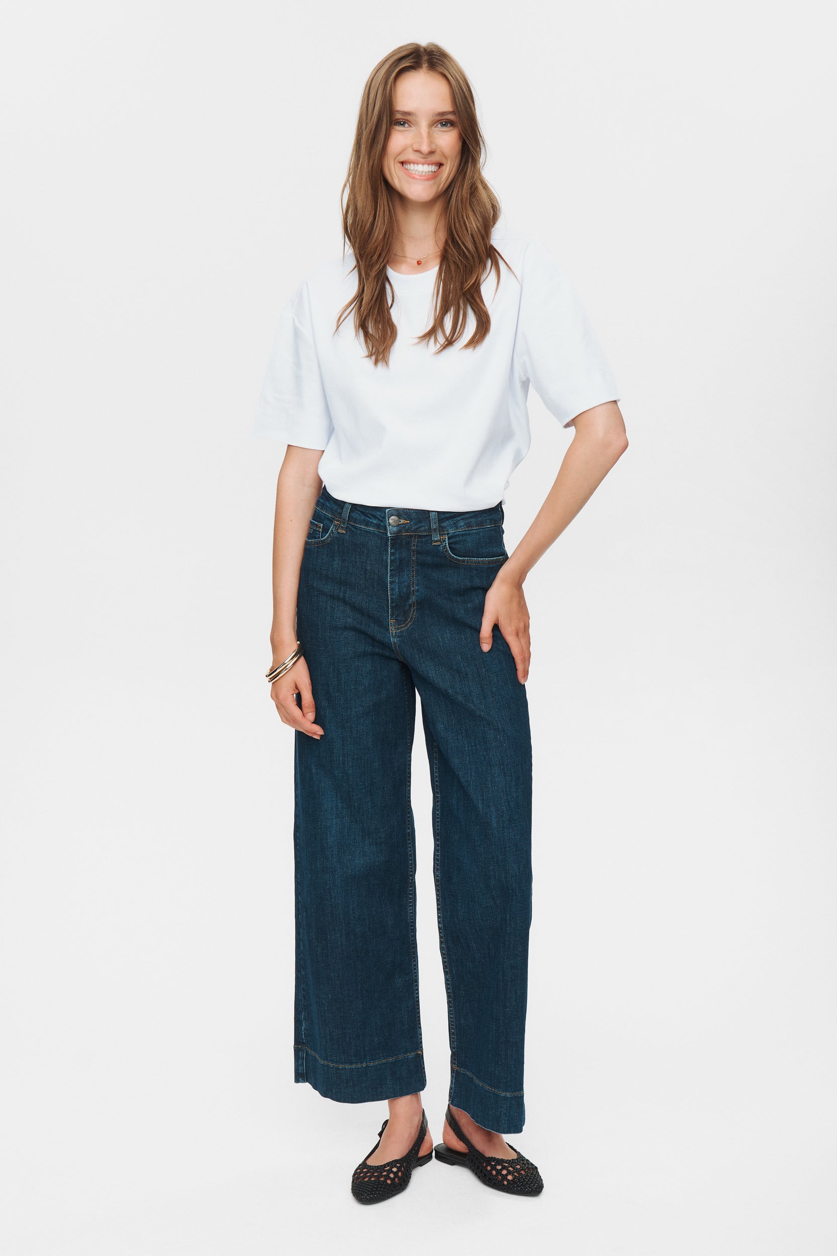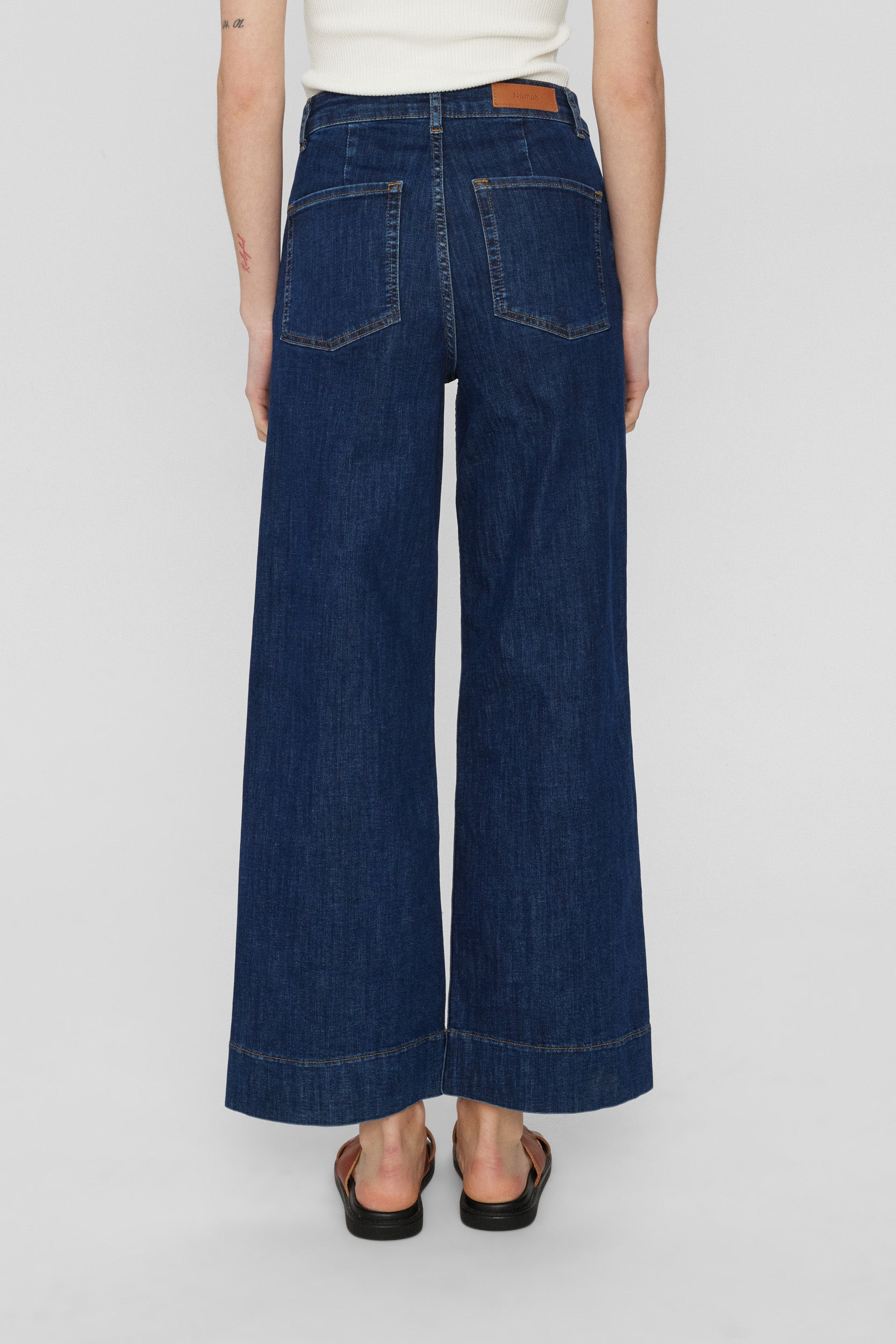 Vaquero cinco bolsillos con pierna ancha y acampanada.